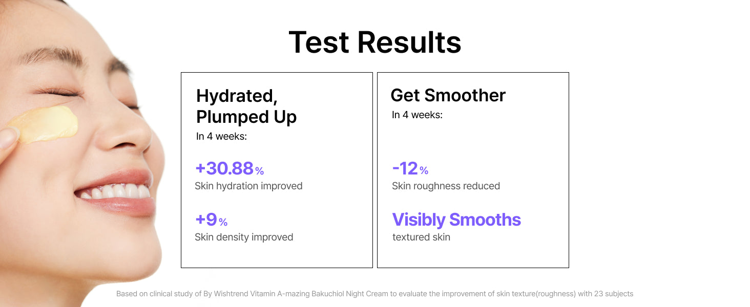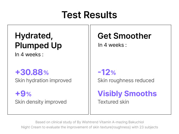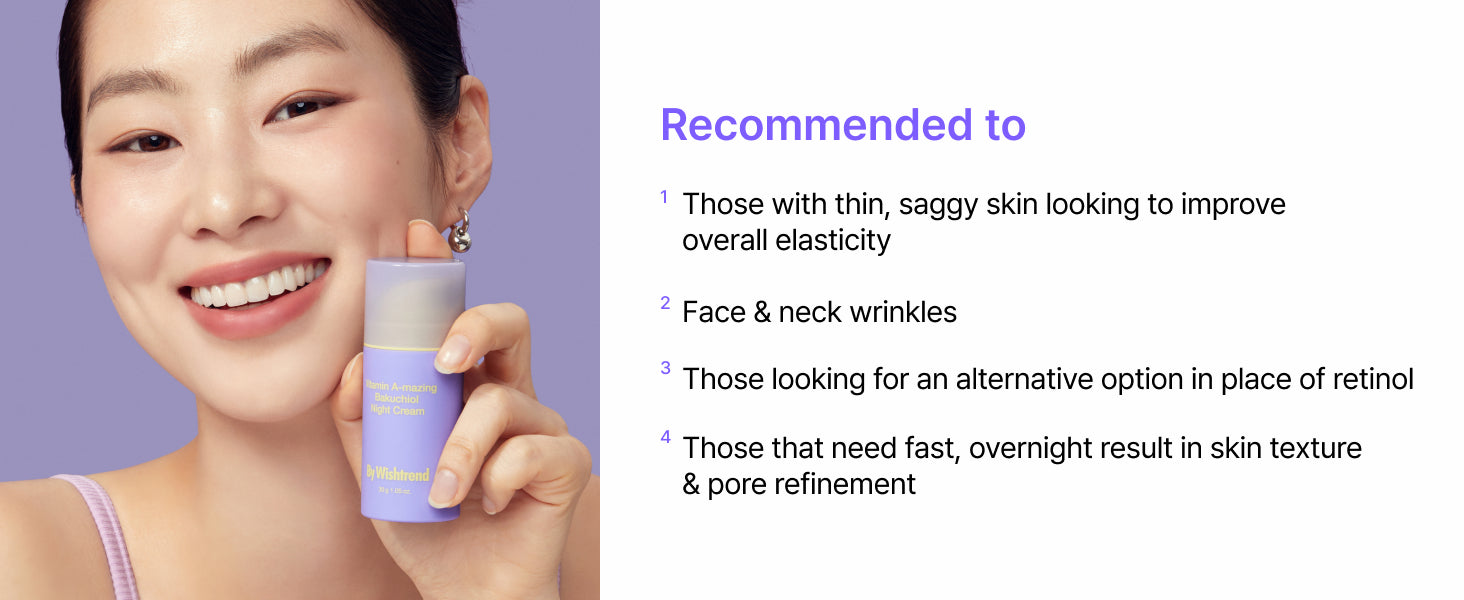 Combination of Retinal and Bakuchiol yields fast and great results with less side effects. The great result here refers to well-aging without irritation and reducing wrinkles. Bakuchiol Night Cream is formulated with two Vitamin A ingredients (Retinal & Bakuchiol), in which Retinal is effective in faster skin condition improvement than Retinol, and Bakuchiol is safer to use for all skin types as is a plant-based retinol.
